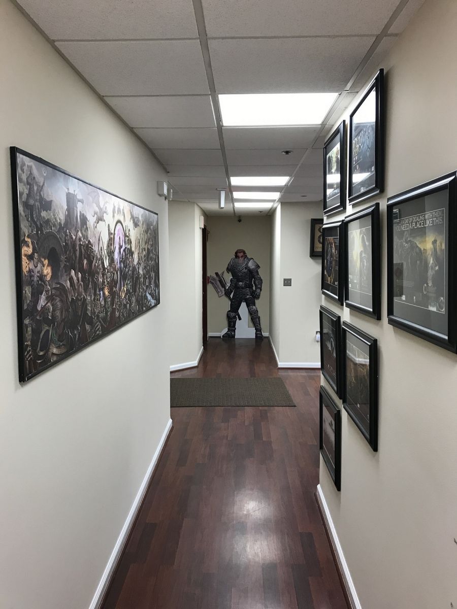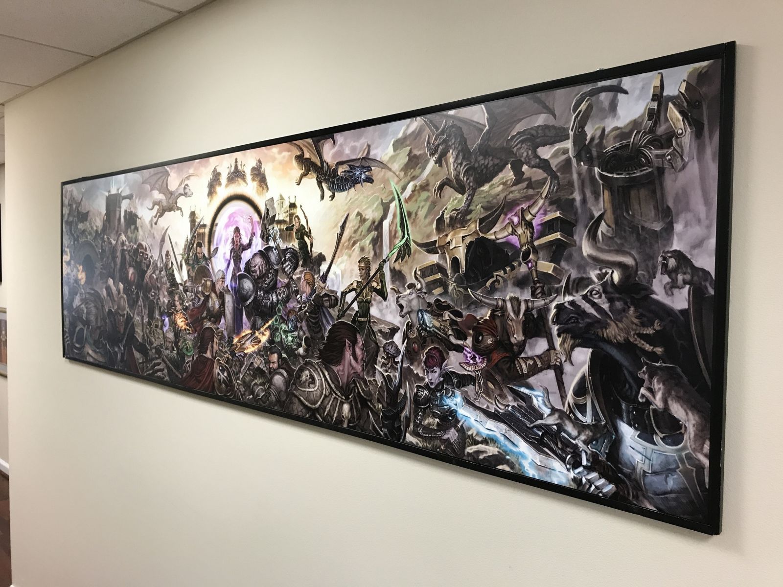 This is a tough one. As many know, Broadsword was formed by members of Mythic Entertainment. Mythic was beloved to all of us, and its spirit lives on in our hearts and minds. When decorating the studio, we were certain to include our heritage, and there are many items from the early days of Dark Age of Camelot and other early Mythic games which can be found throughout the studio. Going back further, Ultima Online memorabilia may be found, some dating back 2 decades. Broadsword is a living museum, so it’s extremely difficult to choose a favorite. Everybody has their own, and that speaks to the diversity and (very) long history of our veteran developers in this studio.