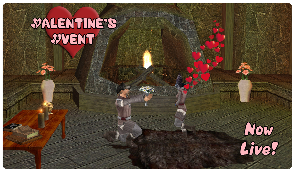 - Valentine’s Traditions: These quests will offer three old style quests which were part of the original Dark Age of Camelot Valentine’s Day content. Players will be able to complete the quest up to eight times, which is based on the number of times the original quest has been issued online. Players will be rewarded with a Hearts Cloak, Heart-Shaped Box, experience and coin. Visit Rumdor in Mag Mell, Hrolf in Mularn, or Sir Prescott in Camelot Hills to start the quest.