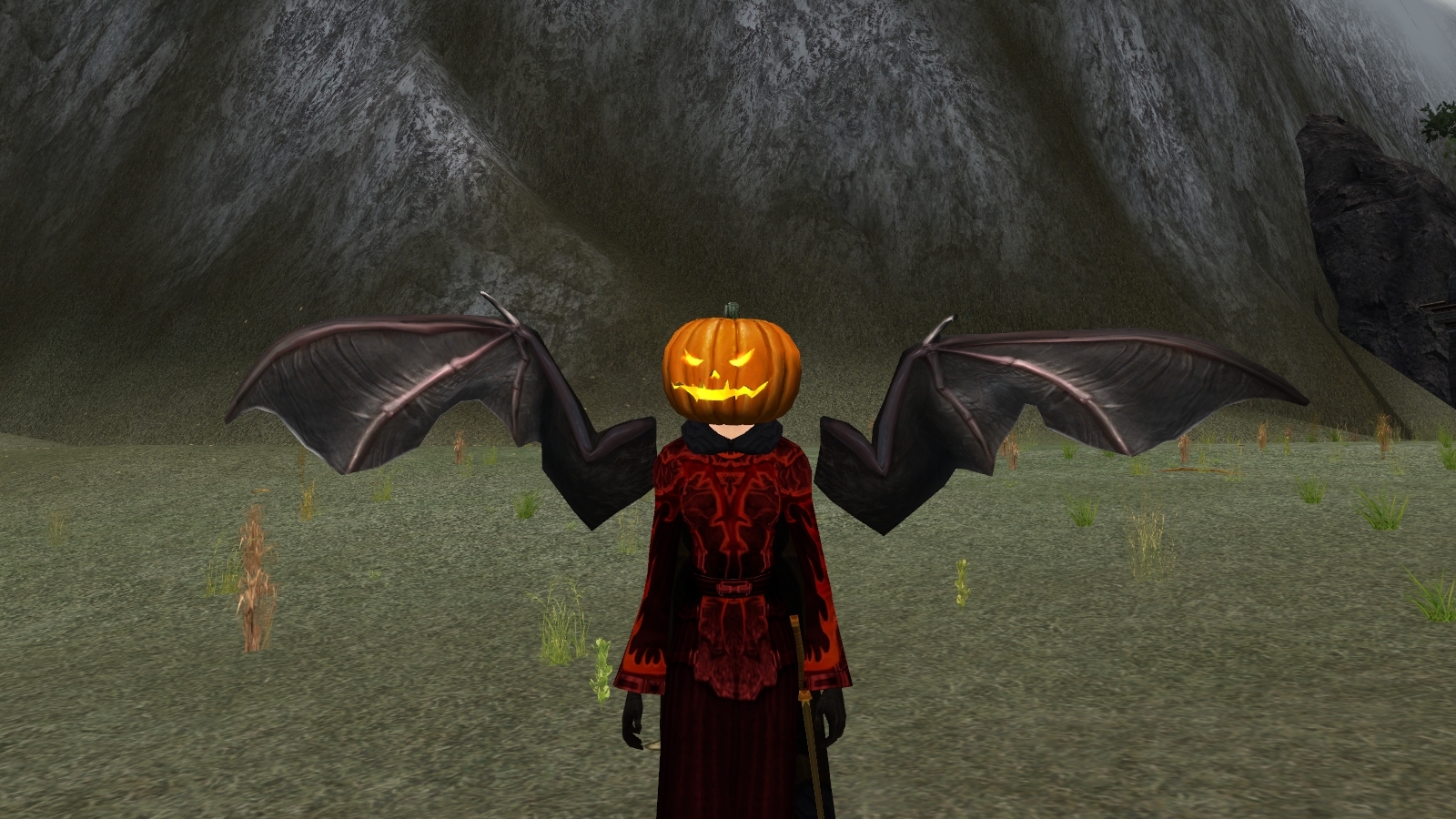 Pumpkin Head pre-set patterns, new spooky Consignment Merchant costumes, and the Wings of Haunting cosmetic spell effect are now for sale for mithril at your realm’s capital city’s Event Shop!