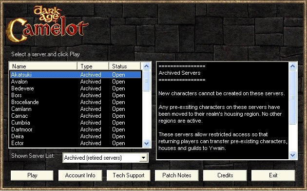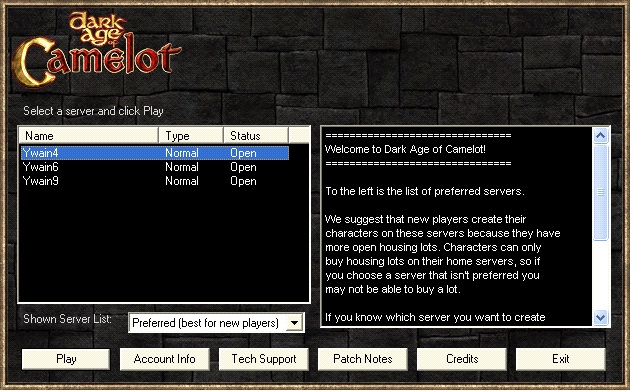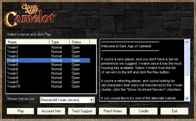 Lastly, if you would like to help us test new changes to Dark Age of Camelot when they’re available, run “camtest.exe” from your install directory.  Once run, the login client will show only the test server cluster.