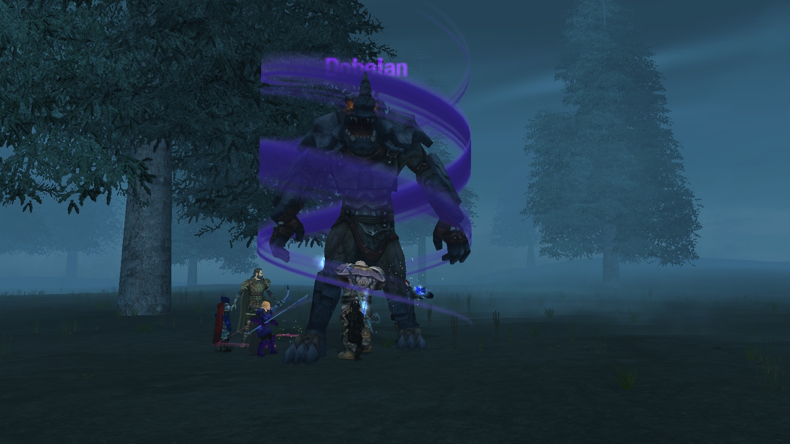 At a cry from ahead I turned from her. Our Dwarf leader had engaged this Dobelan, no doubt thinking I dither with the other healers. Not to be outdone when watched by her, I charged this tall creation, less Jotun than beast. A worthy opponent, for once, this creature took little damage from our combined onslaught. I thought then of the words of Alvaas. I reached deep, hunger for battle, this fight, shock of weapon, hands, arms, shoulders upon impact, parry, riposte. Out of the deep the need to protect. I turned then, protecting Alvaas. A swarm of creatures flooding her, her cry, that sound I vow never hear again, feeling her pain, seeping life force almost gone. I reached still deeper. A roar, taunt of fury, a swipe of shield, these creatures to a one, turned to me. Tyr will not be ignored, cannot be ignored. Without pause she recovers, we survive, by area effect these creatures were dispatched, and none too soon, for Dobelan proved more stout than any we have yet encountered in this Otherworld.